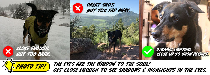 I work from photographs that you provide. Photos that work best are up close, well lit, and capture your companions eyes.